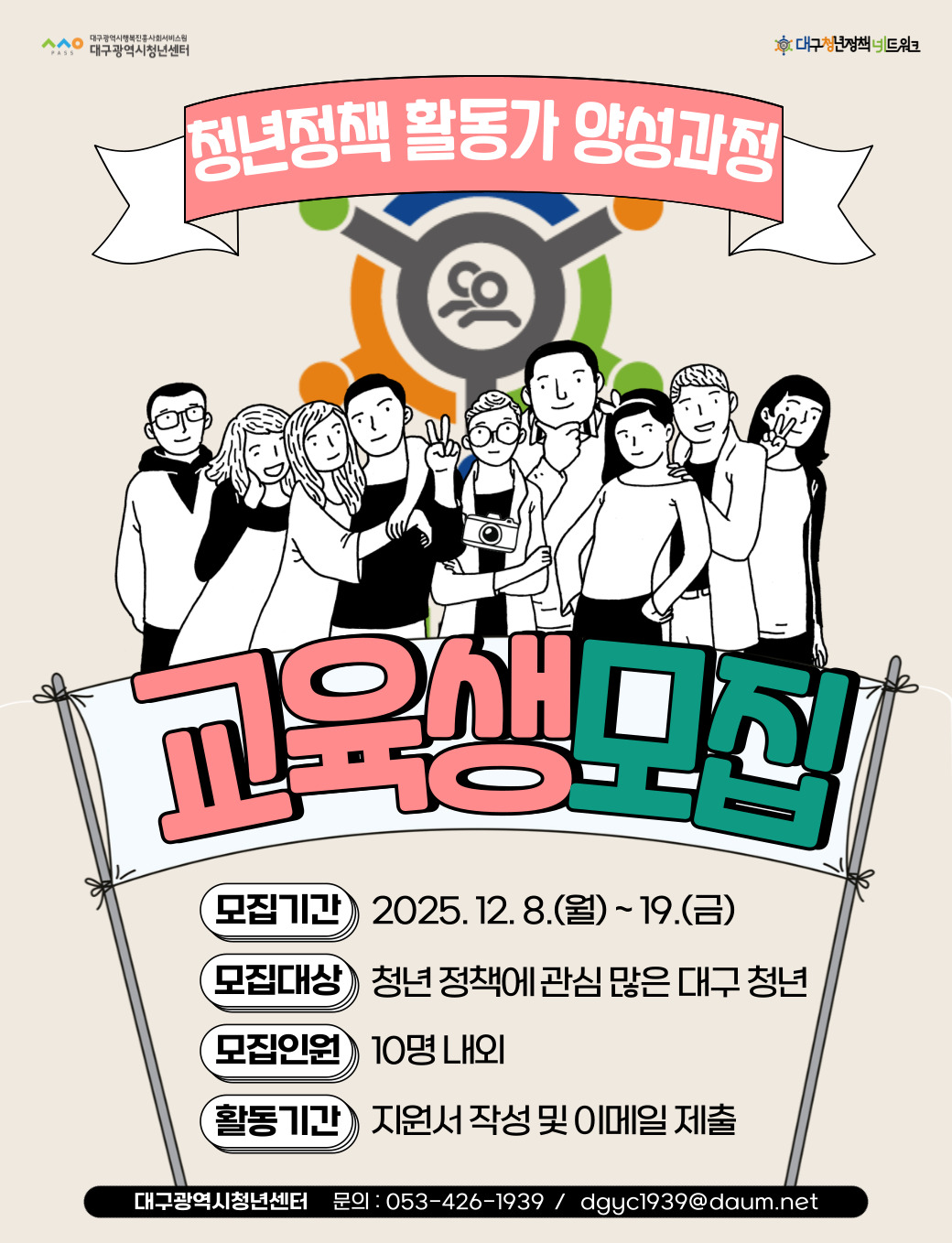 [공지] [센터사업] 2025 대구청년정책네트워크 청년정책 활동가 양성과정 ..