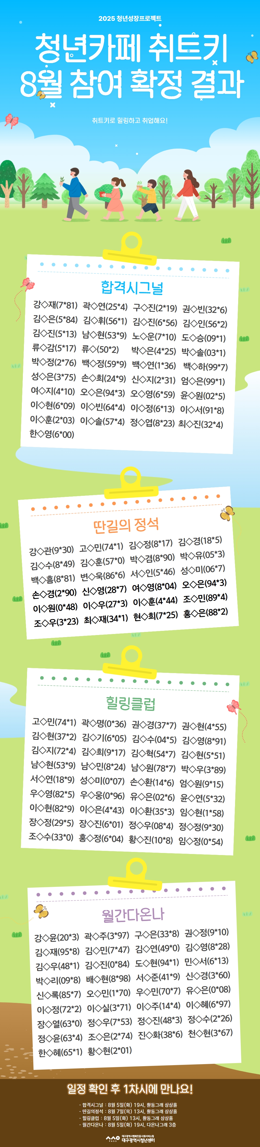 [센터사업] 2025 청년성장프로젝트 청년카페 '취트키' 8월 프로그램 참여자 확정결과