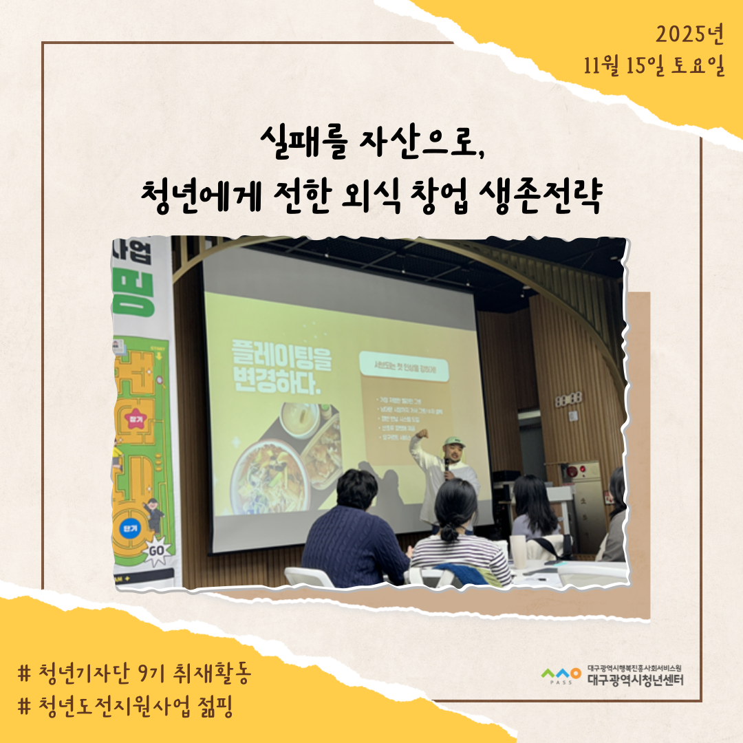 청년성장지원 [청년도전지원사업 젊핑] 실패를 자산으로… 청년에게 전한 외식 창업 생존전략 2025.11.15