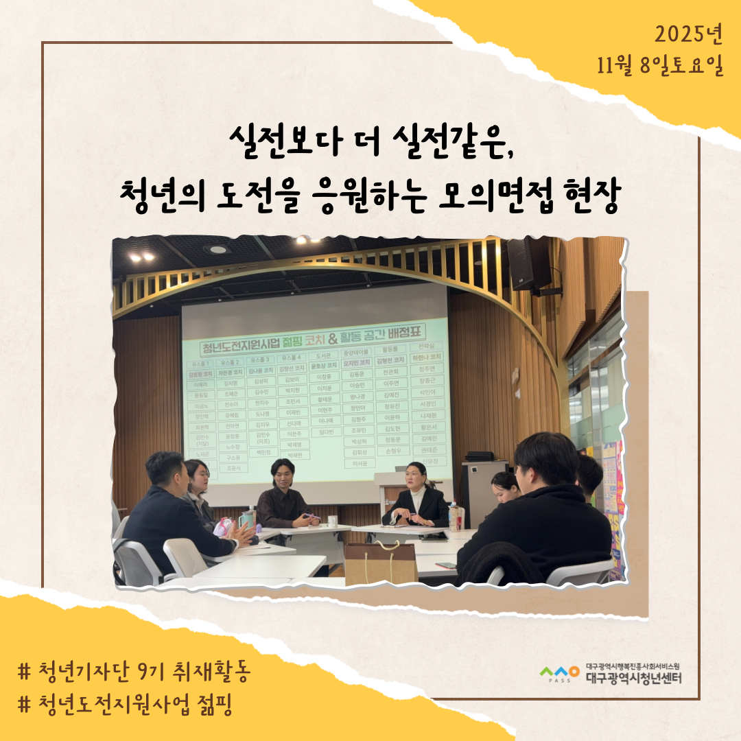 청년성장지원 [청년도전지원사업 젊핑] ‘실전보다 더 실전 같은’… 청년의 도전을 응원하는 모의면접 현장 2025.11.08