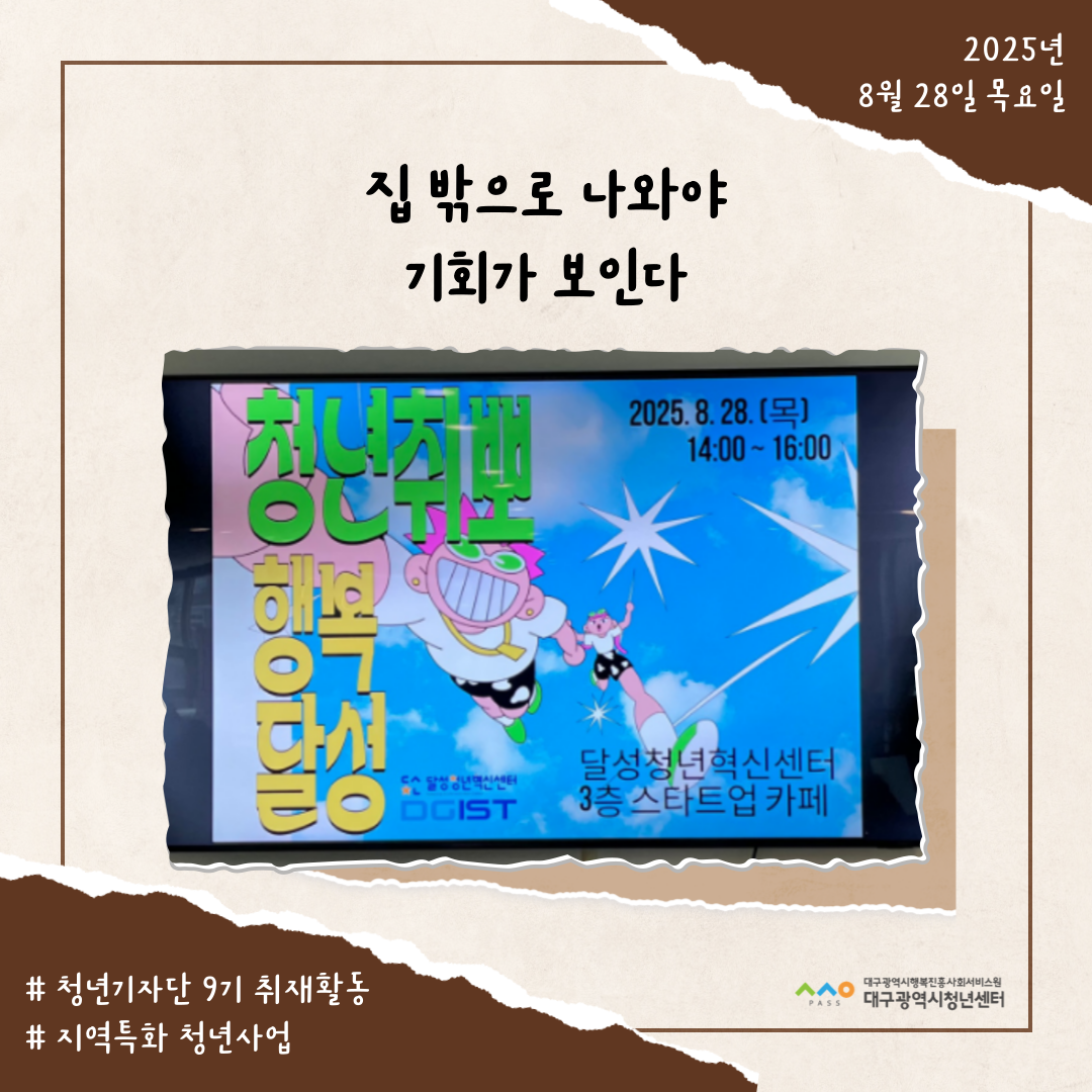 청년성장지원 [지역특화 청년사업] 집 밖으로 나와야 기회가 보인다 2025.08.28
