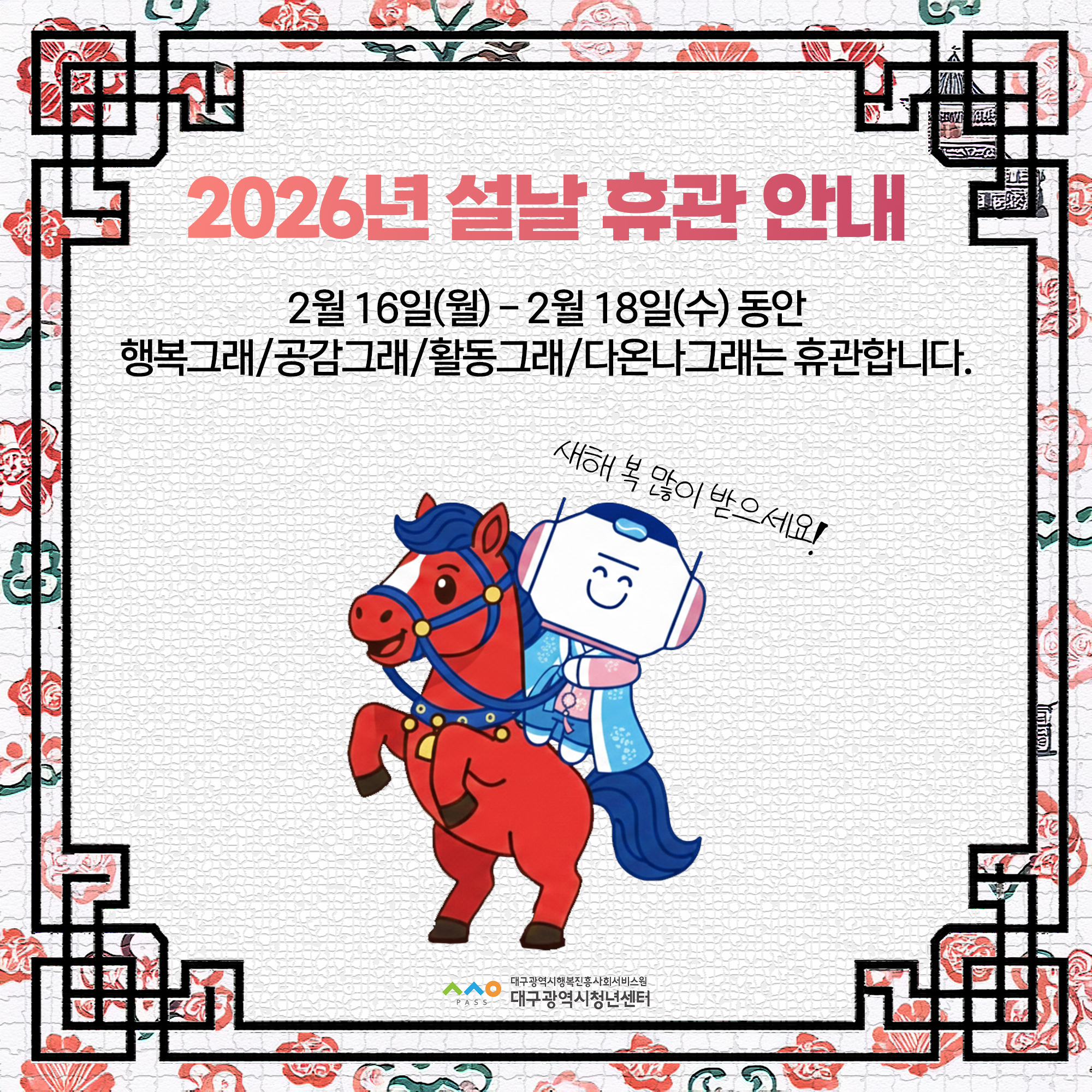 [공지] [센터사업] 2026년 설날 휴관 안내