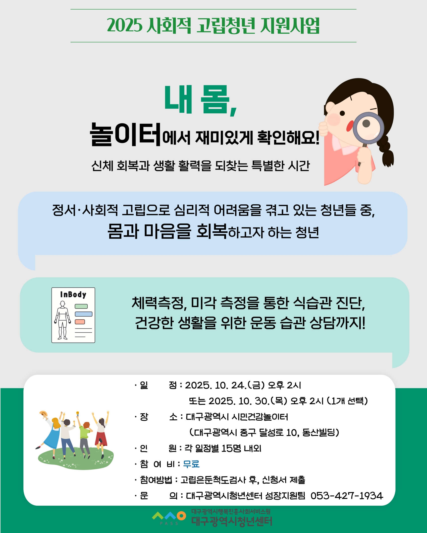 ▶ 문 의 : 대구광역시청년센터 성장지원팀 053-427-1934