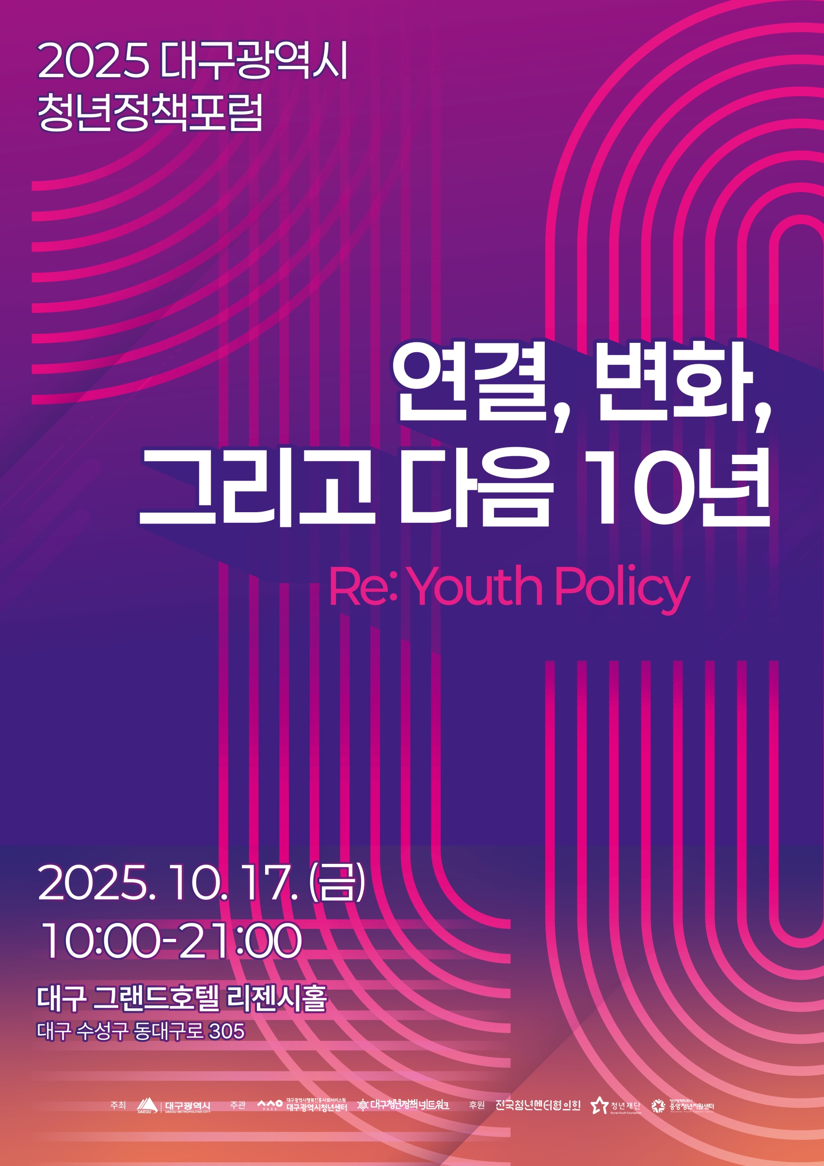 ▷ 행 사 명 : 2025 대구광역시 청년정책포럼_'연결, 변화, 그리고 다음 10년' Re: Youth Policy