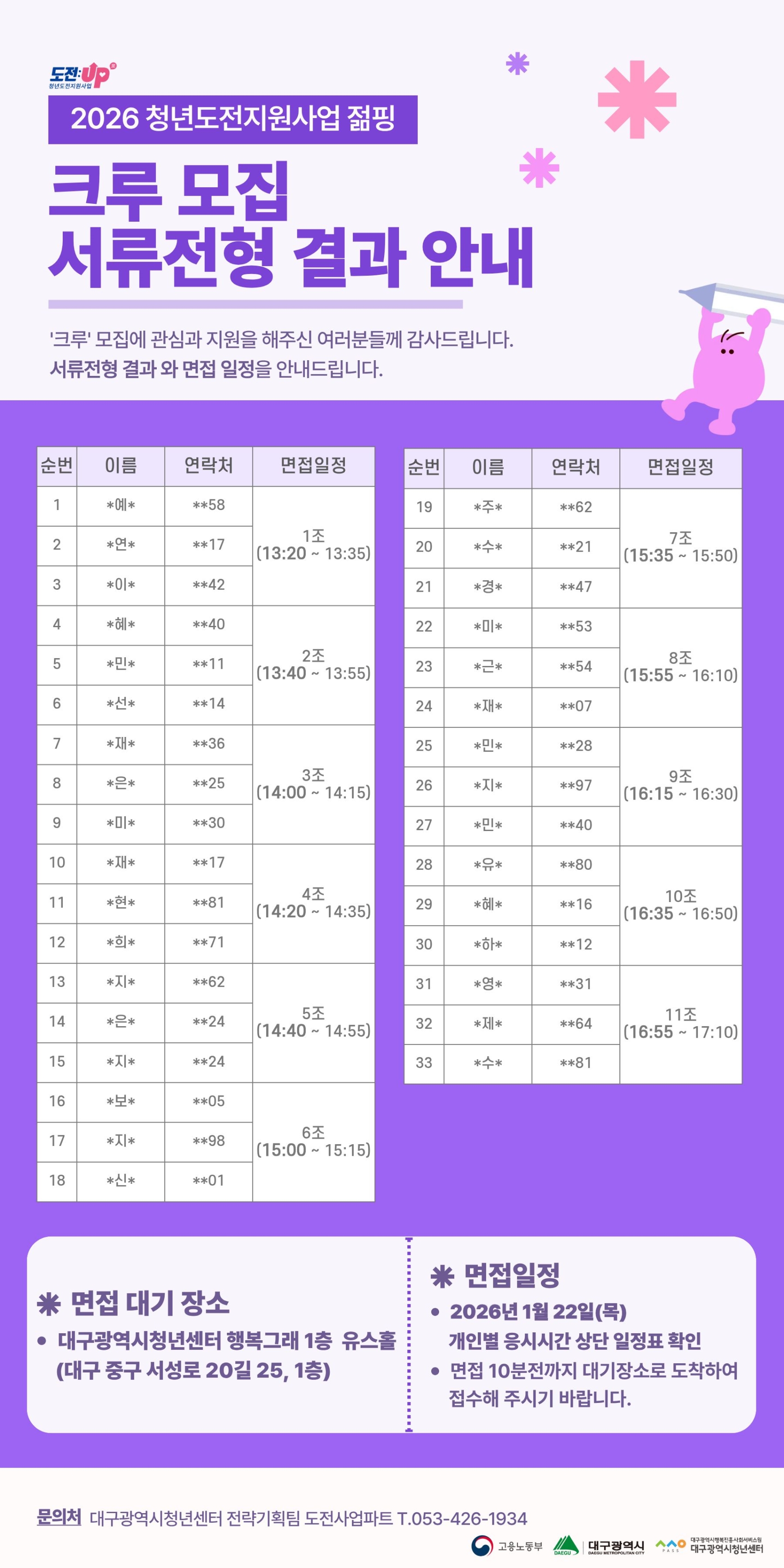 [공지] [센터사업] 2026 청년도전지원사업 젊핑 크루모집 서류전형 결과 안내