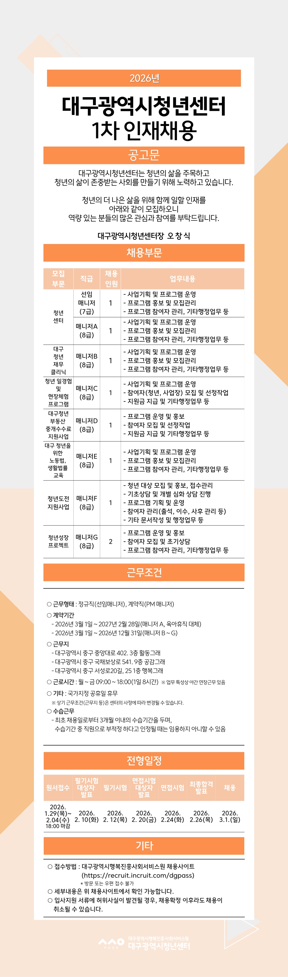 [공지] [채용공고] [제2026-01호] 대구광역시청년센터 인재채용 공고