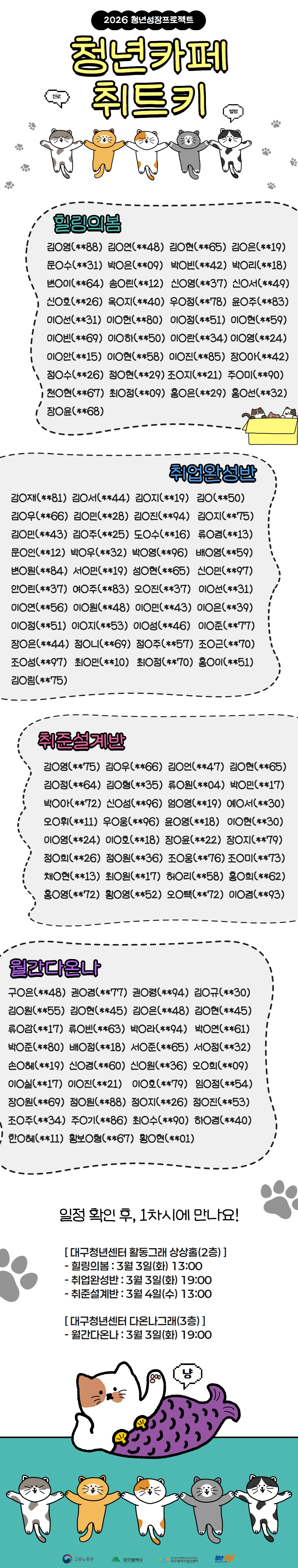 2026 청년성장프로젝트 청년카페 '취트키' 3월 프로그램 참여자 확정결과