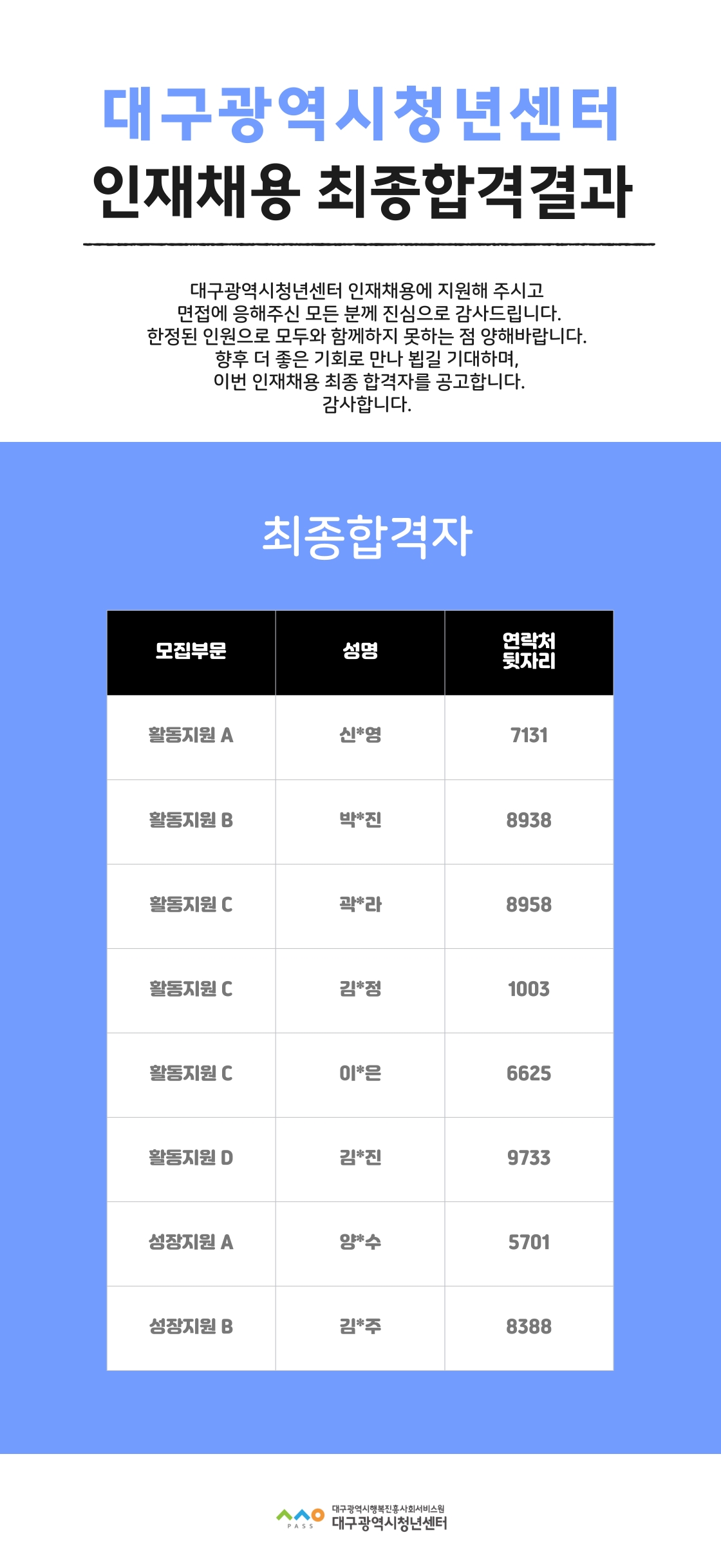 [제2025-02호] 대구광역시청년센터 인재채용 최종 결과발표