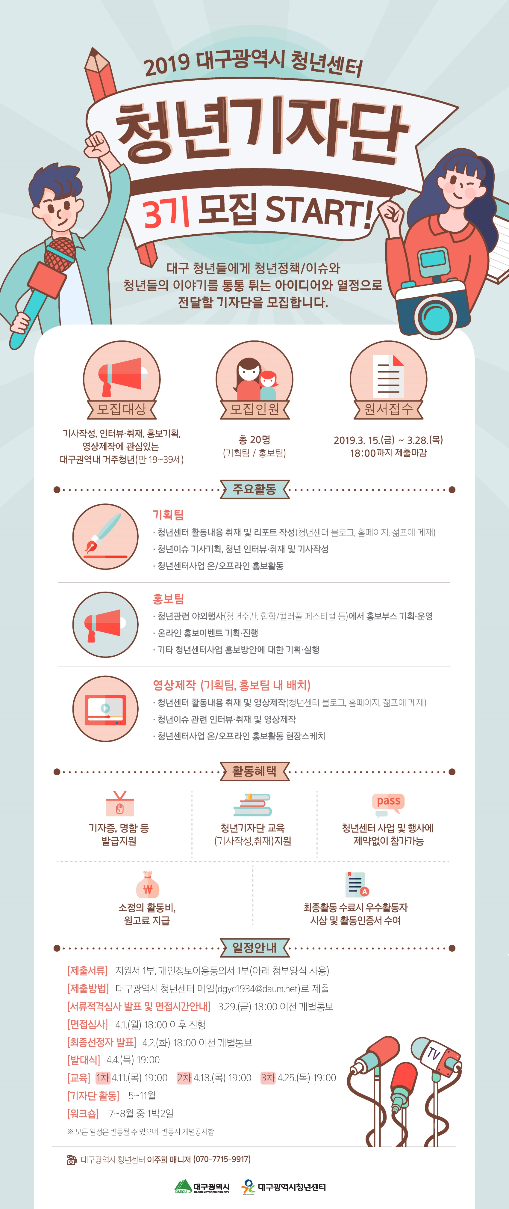 [센터사업] 2019 청년기자단 3기를 모집합니다!