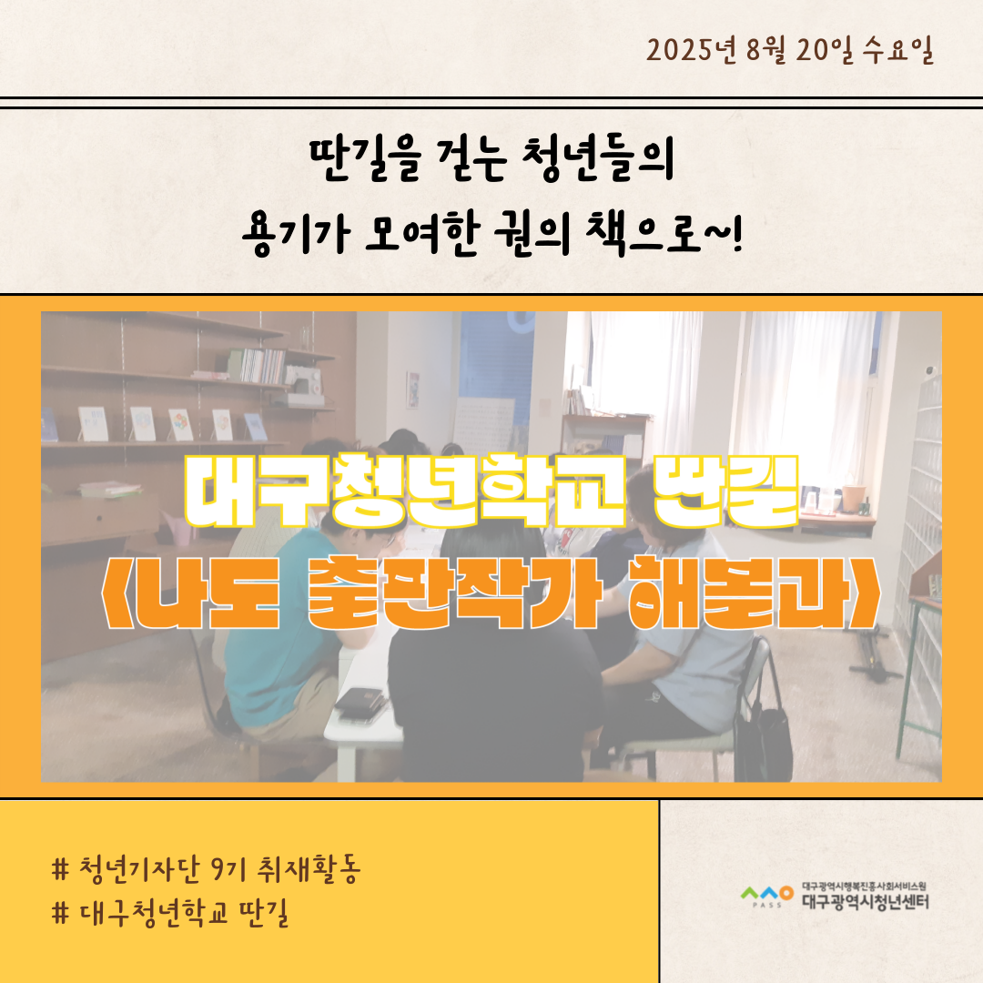 청년성장지원 [대구청년학교 딴길] 딴길을 걷는 청년들의 용기가 모여 한권의 책으로! 2025.08.20