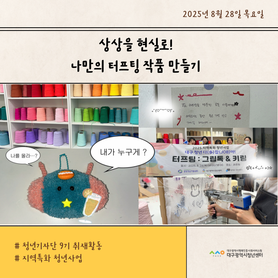 청년성장지원 [지역특화 청년사업] 상상을 현실로! 나만의 터프팅 작품 만들기 2025.08.28