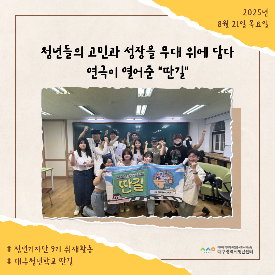 청년성장지원 [대구청년학교 딴길] 청년들의 고민과 성장을 무대 위에 담다 2025.08.21