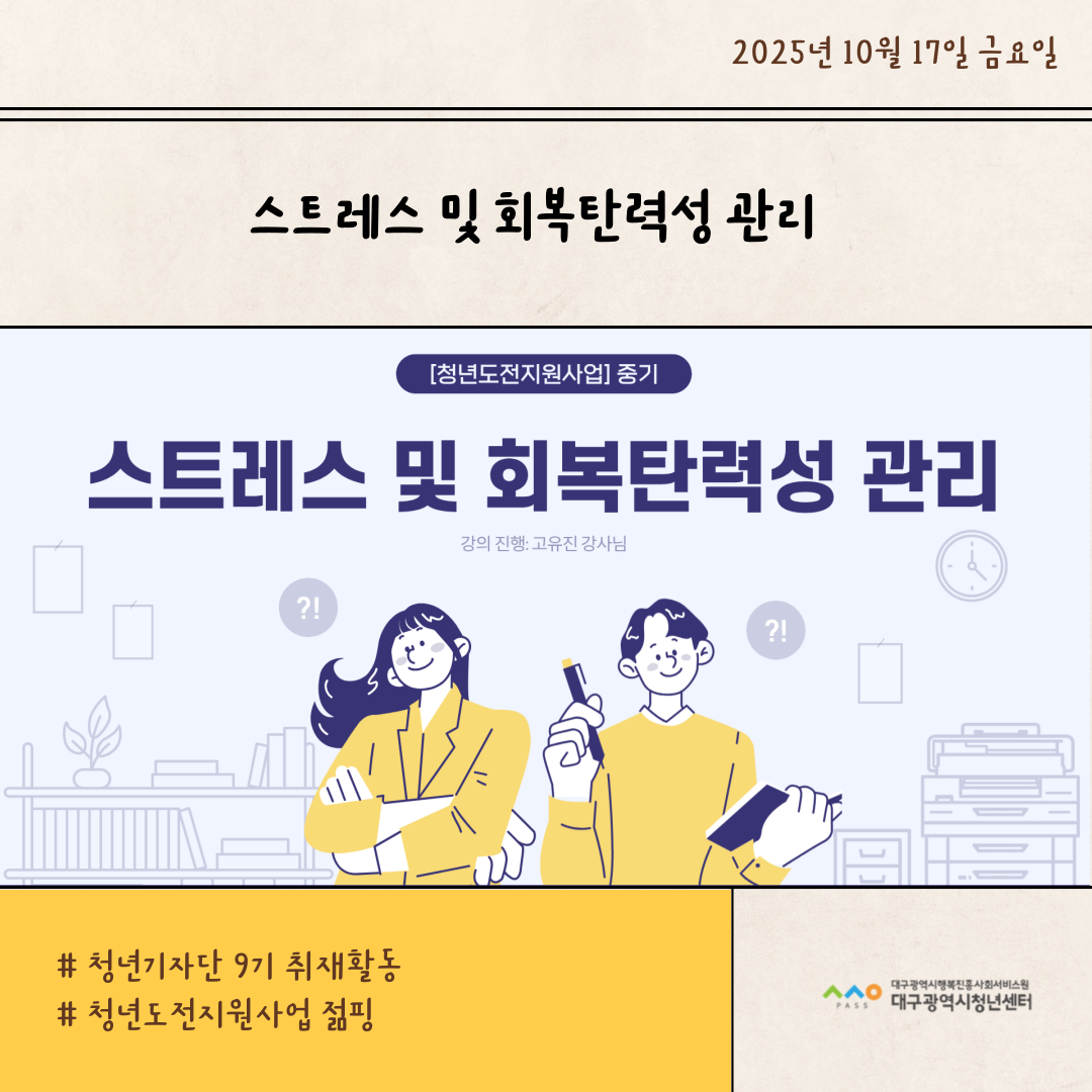 청년성장지원 [청년도전지원사업 젊핑] 스트레스 및 회복탄력성 관리 2025.10.17